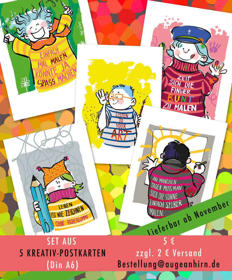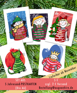 5 verschiedene Postkarten Din A6 (ohne Umschlag, Rückseite beschreibbar)
